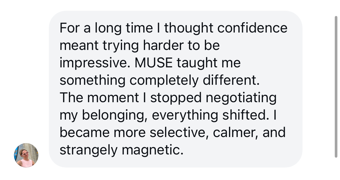THE MUSE rewires that reflexso you speak with grounded certainty, not silent approval-seeking. And suddenly, people listen differently.