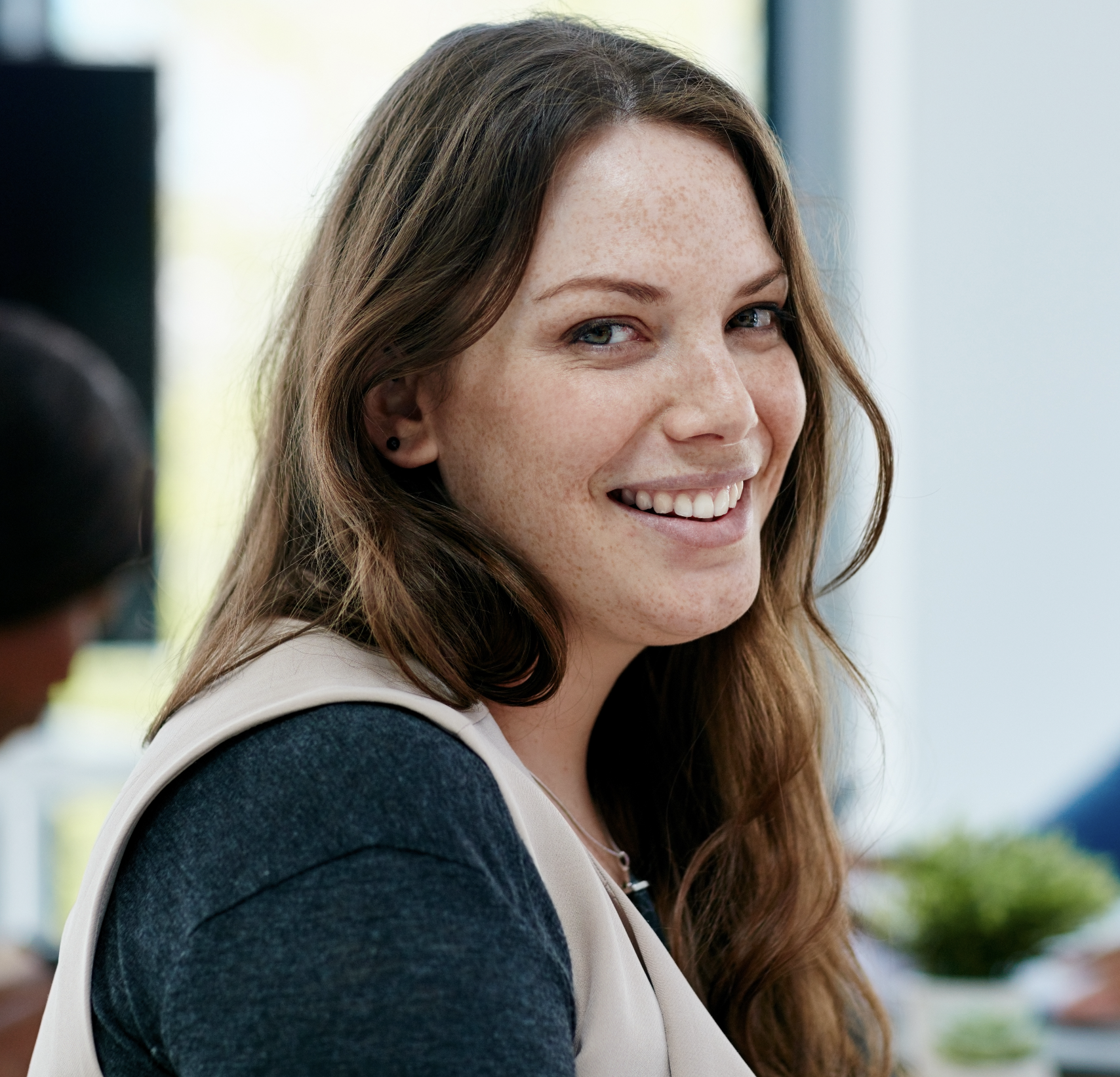 You scan the room before you speak.